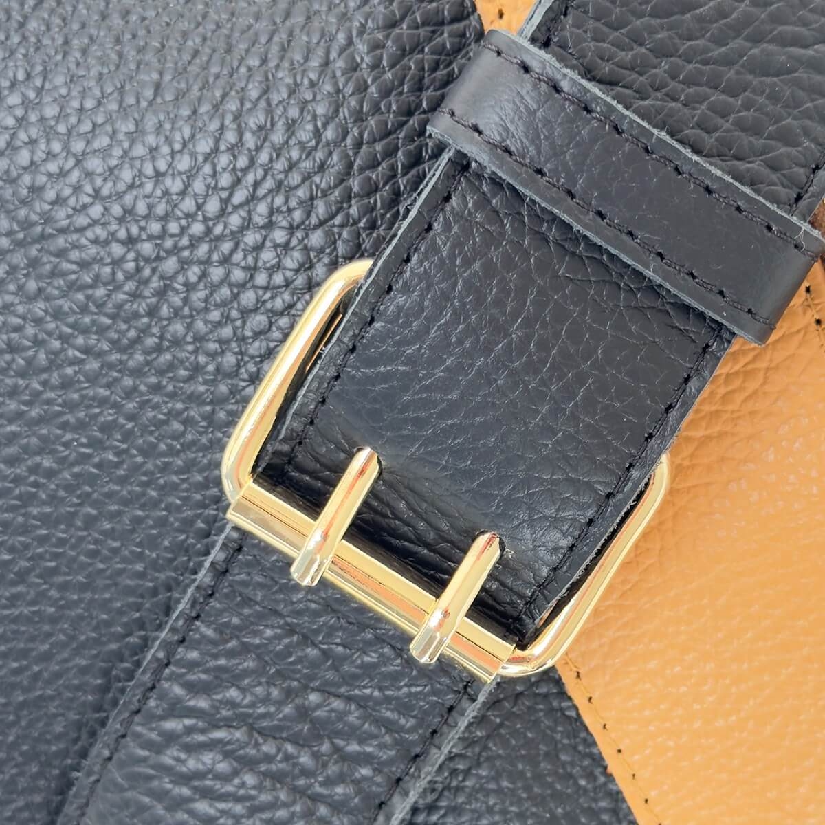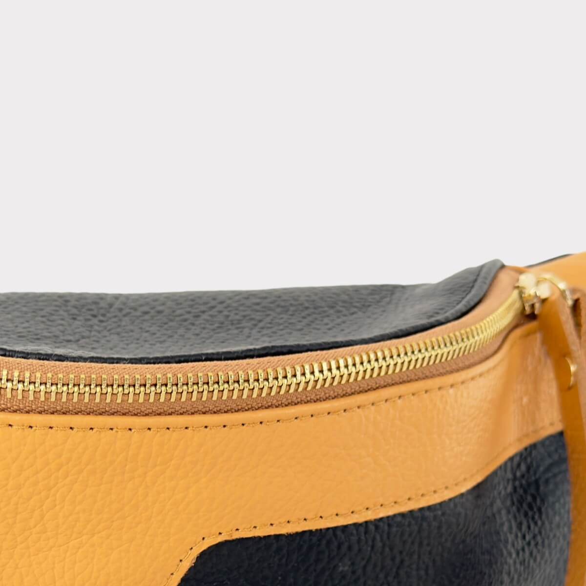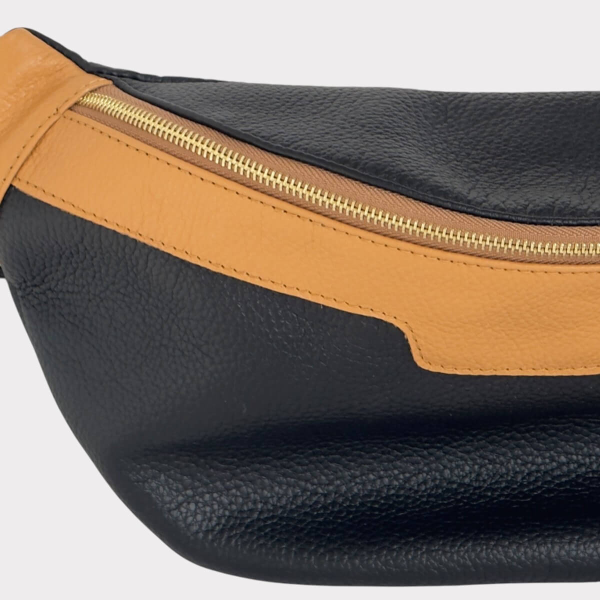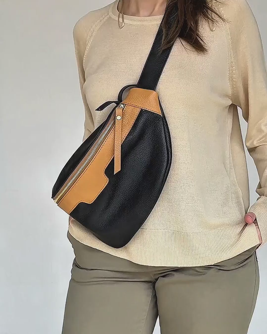 Black and Tan Leather Sling Bag - Soft Crossbody Fanny Pack