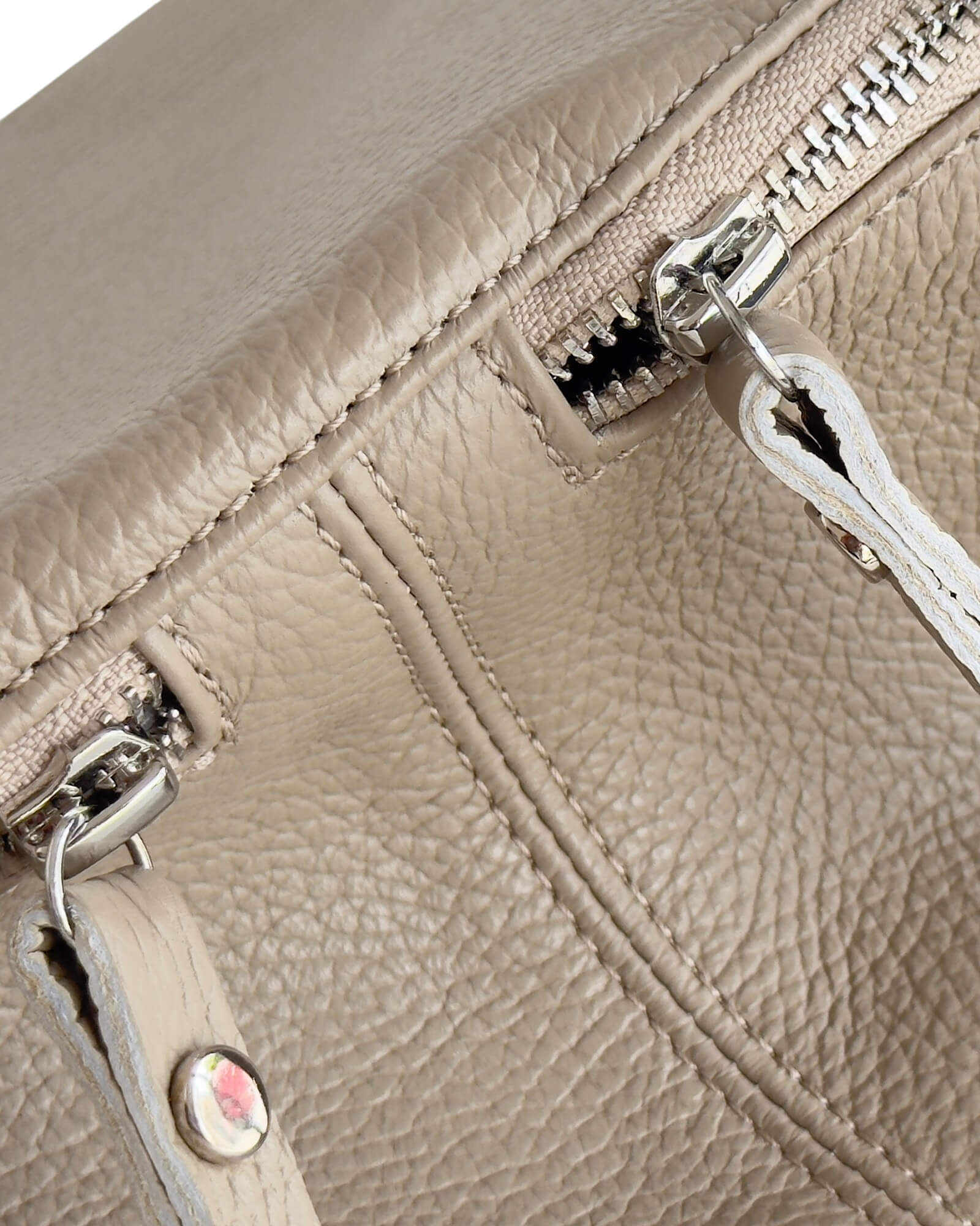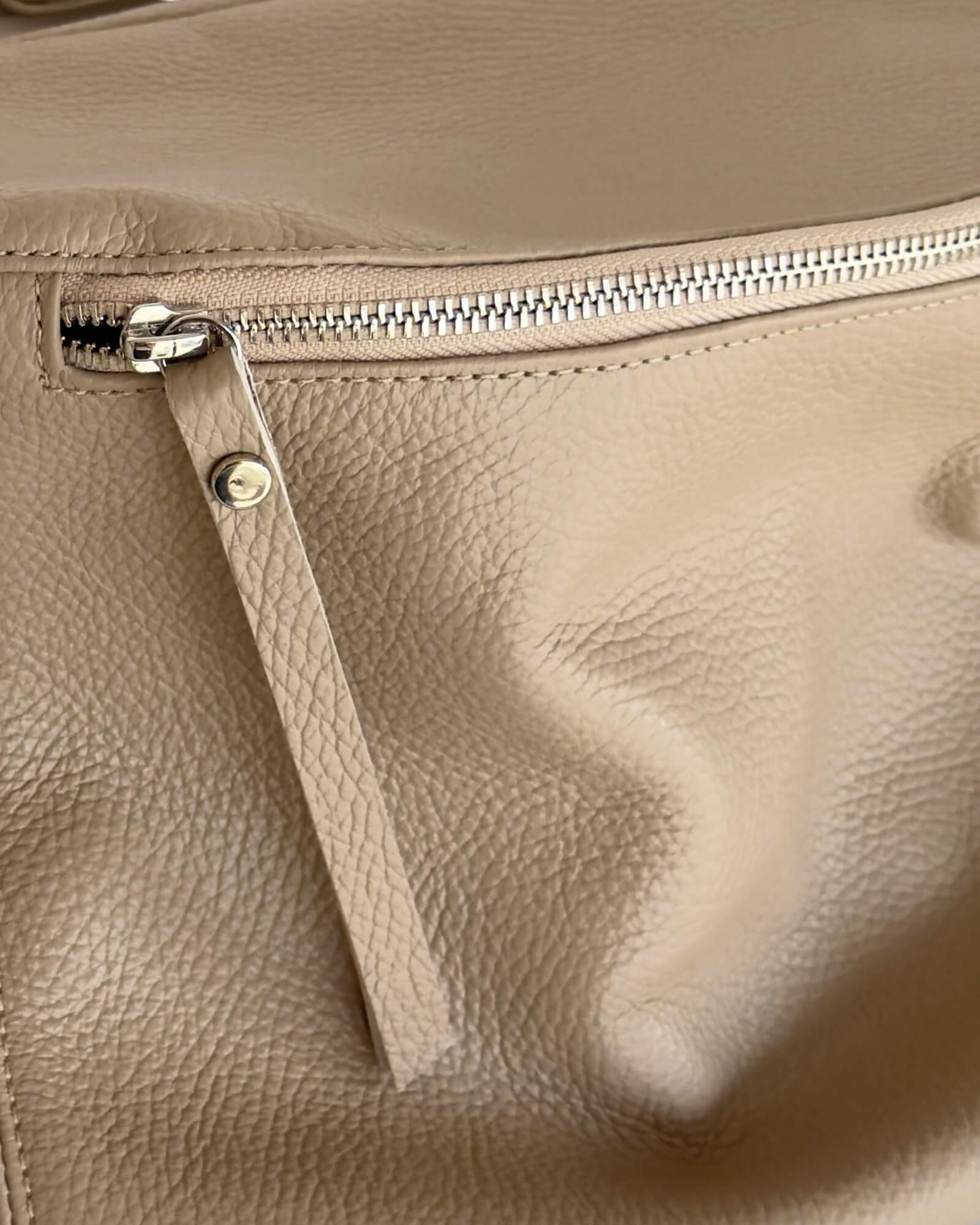 We use high-quality metal zippers that glide effortlessly and add a refined touch to the design. Their strength and shine elevate both the function and aesthetics of the bag.