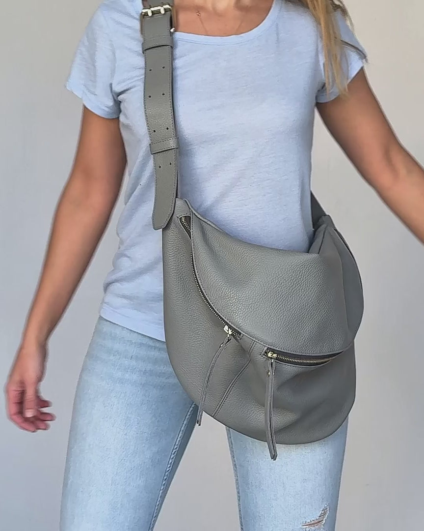 Large Grey Leather Sling Bag - Oversized Fanny Pack