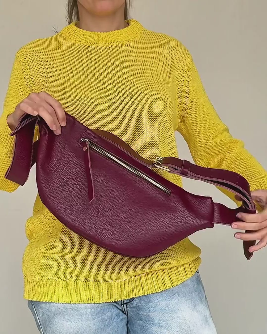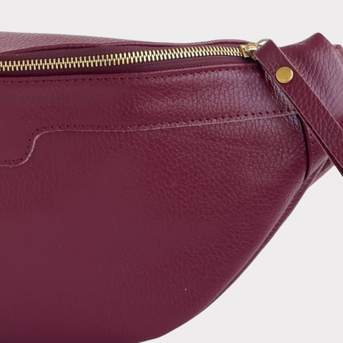 Medium Burgundy Leather Sling Bag - Slouchy Crossbody Fanny Pack